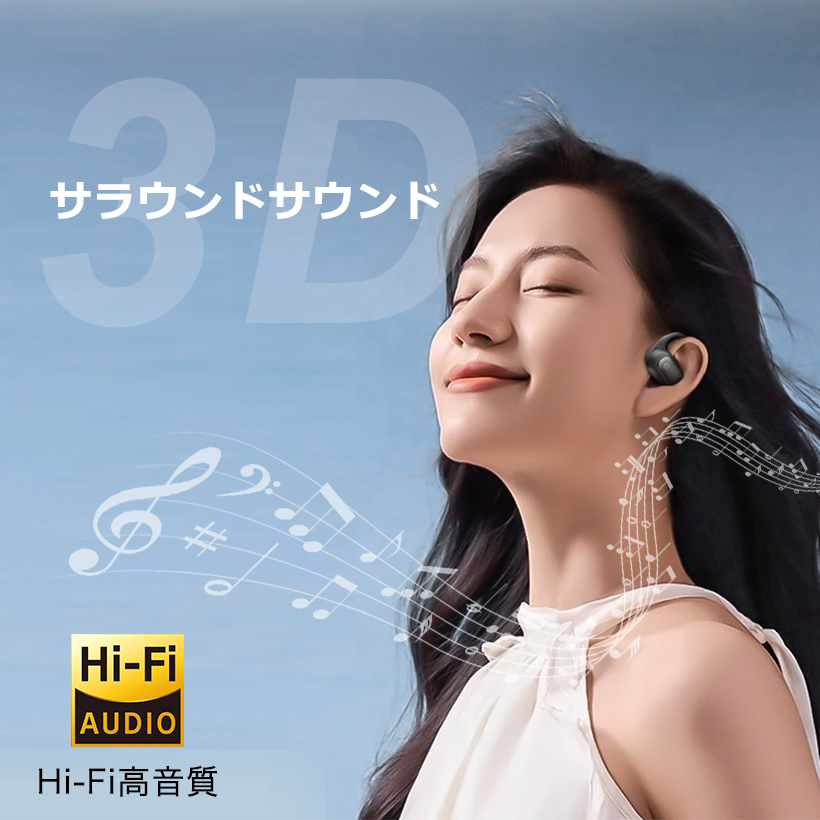 Bluetooth5.3 軽量 36時間超再生 空気伝導 マイク付