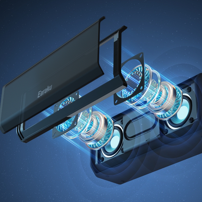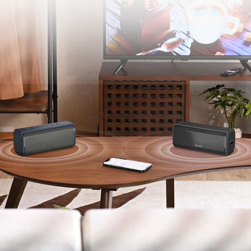 TWS機能2台無線接続により、2台のスピーカーをつなぎ、より広がりのあるステレオサウンドに。