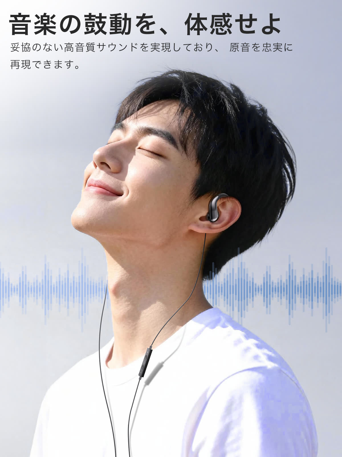 3.5mm有線接続により音切れや遅延の心配なし。動画視聴やゲームにも最適です。マイク付きリモコンで再生・停止・音量調整などを手元で簡単に操作できます。 -